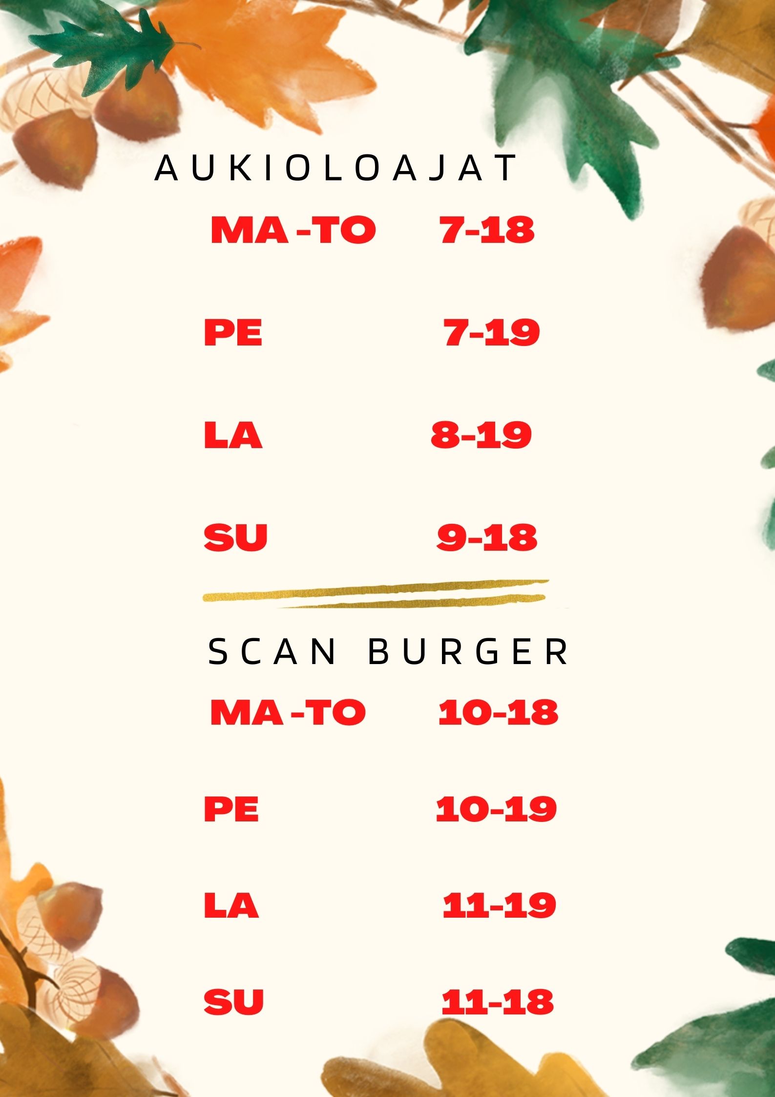 Monipuolisten palveluidemme ansiosta olemme näppärä taukopaikka, jossa viihtyy koko perhe. Poiketkaa syömään vaikkapa ScanBurgerin mehukkaat hampurilaiset tai tilatkaa herkullinen pizza samalla, kun auto on huollossa. Yhdellä kertaa voitte kätevästi hoitaa niin autoasiat kuin ruoka- ja vessatauotkin, jonka jälkeen matkanteko vai jatkua tyytyväisellä mielellä. Mikäli aikataulu on pidempää pysähdystä varten liian tiukka, meiltä voi tilata myös ruoka-annoksia mukaan otettavaksi.